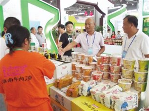 淮南牛肉汤吸引顾客 9月9日11日,中国安徽名优农产品暨农业产业化交易会在合肥滨湖国际会展中心举行,淮南市组织了49家企业参展,淮南馆内,淮南牛肉汤、八公山豆制品、安徽老字...