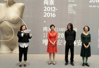 展览开幕现场(从左-右:郭晓彦、周旭君、朱朱、向京) 2016年9月18日下午4:00,向京大型回顾展唯不安者得安宁(1995-2011)+新作S个展(2012-2016)在中国民生银行北京民生现代美术馆...